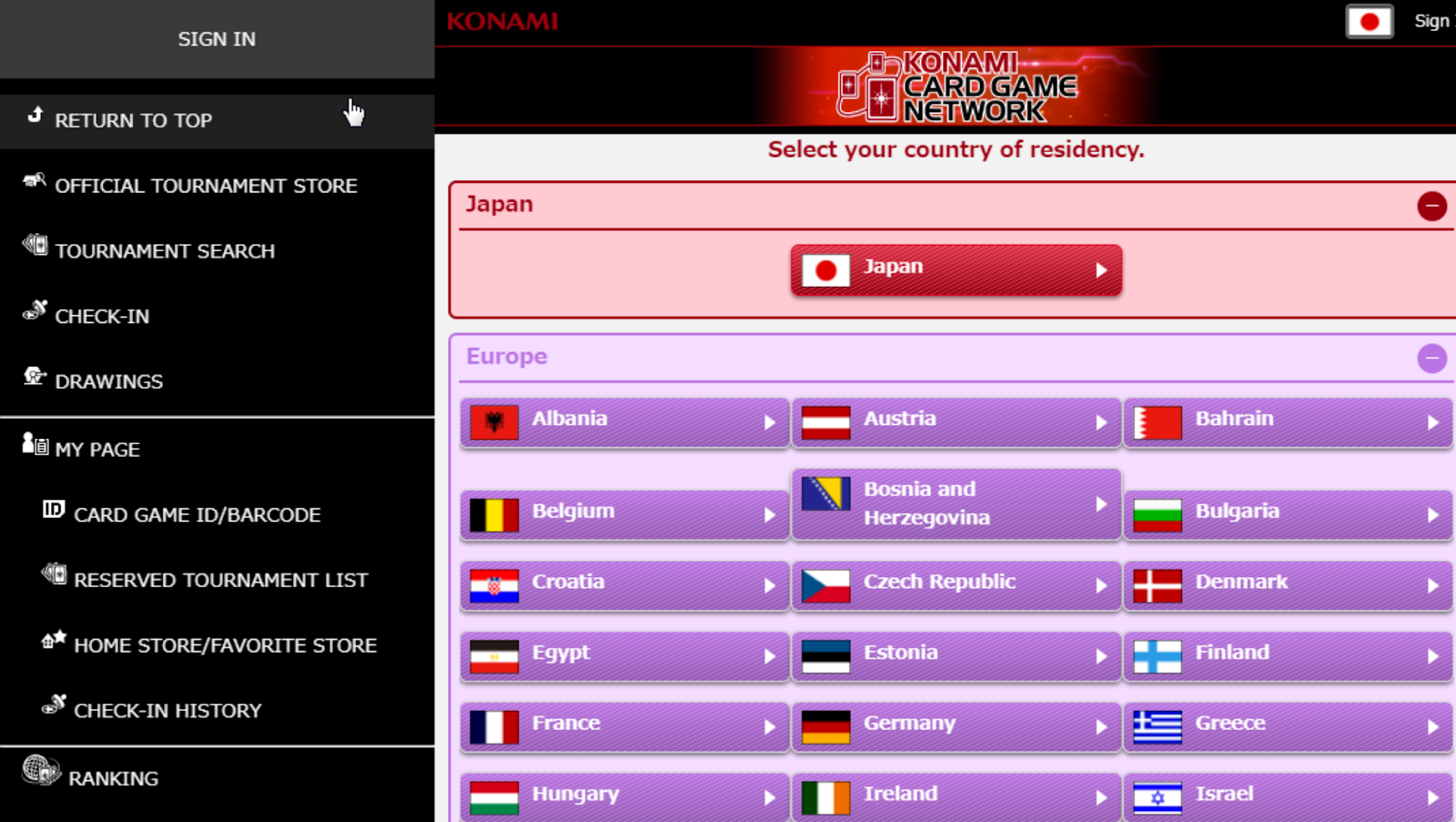 Wähle nun die Sprache und das Land. Bitte beachte das, du hier das korrekte Land auswählst. Falls nicht, registrierst du deine KONAMI ID für ein anderes Land, dies kann nicht nachträglich geändert werden.