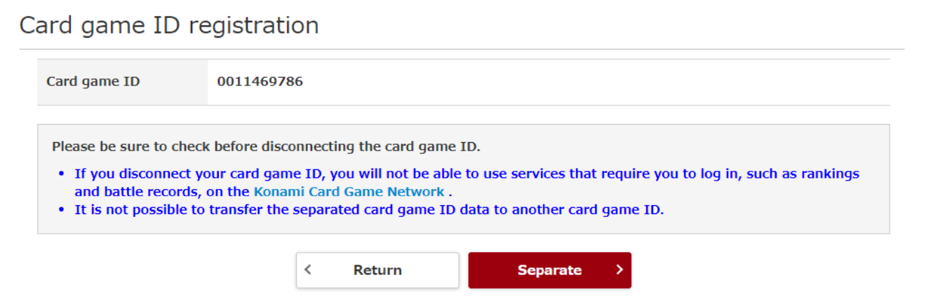 Sobald dies geschehen ist, hast du deine KONAMI ID erfolgreich erstellt und mit deiner COSSY ID / CARD GAME ID verknüpft!